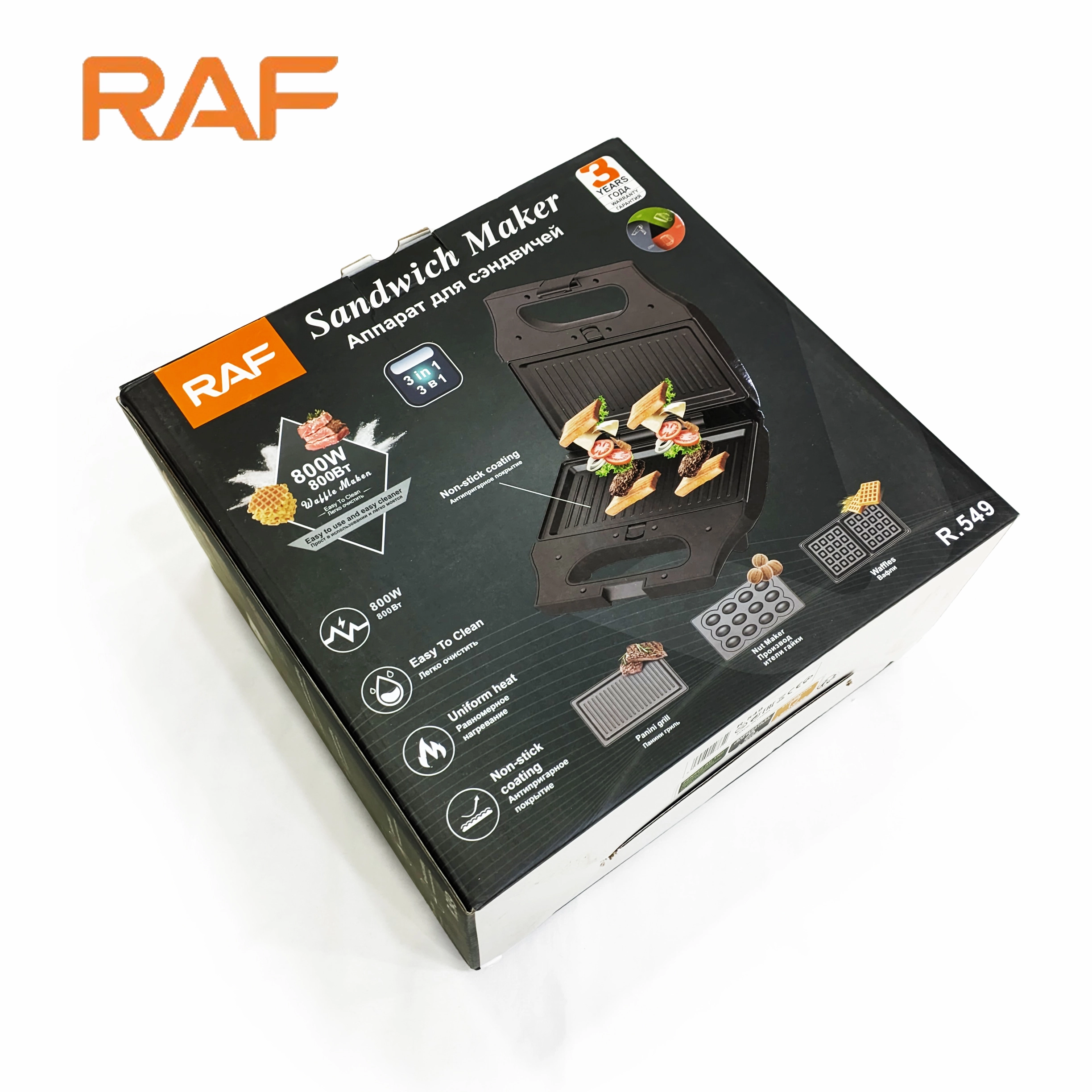 Introducing the versatile RAF 3-in-1 Sandwich & Panini Grill, Waffle Maker, Nut Maker R.549 priced affordably. This multipurpose appliance is a must-have for every kitchen, combining the functionalities of a panini cooker, grill panini sandwich maker, and sandwich toaster in one convenient device.